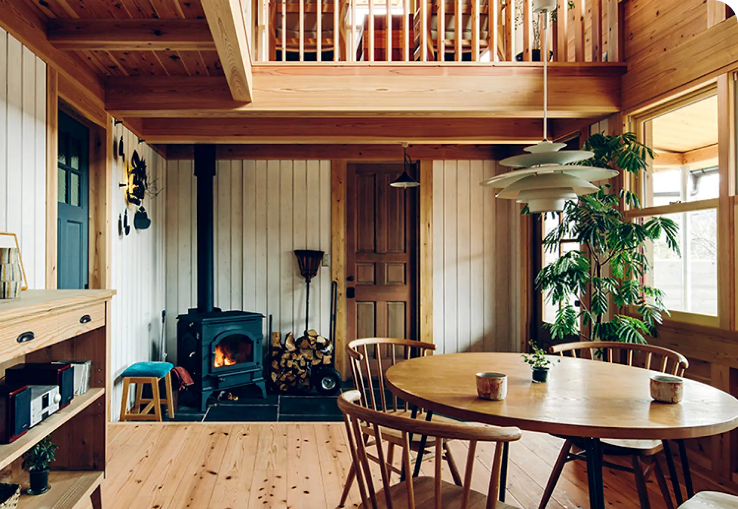 ログハウスのように木に囲まれた家や、自然素材(無垢)をふんだんに使用した板倉の家、
